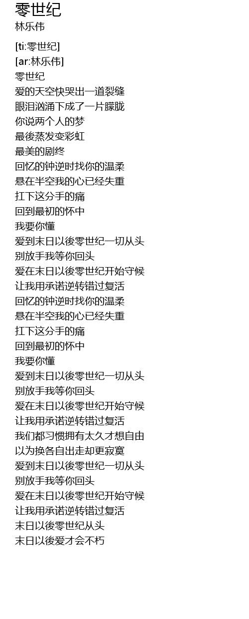 | [03:26.324] | 爱在末日以後零世纪开始守候 |