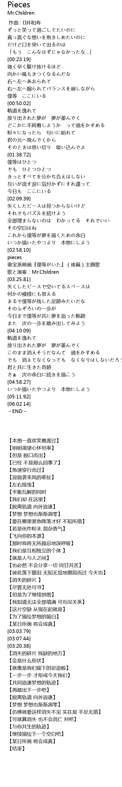 | [03:20.38] | 歌と演奏:Mr.Children |