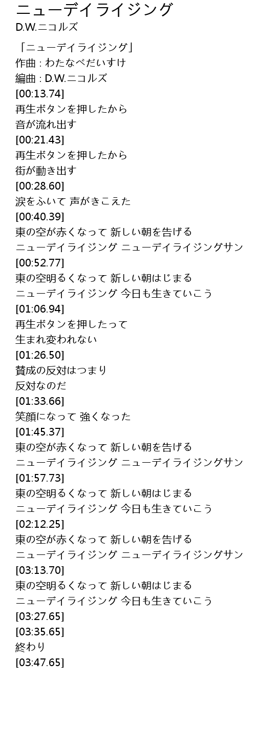 | [03:23.34] | ニューデイライジング 今日も生きていこう |