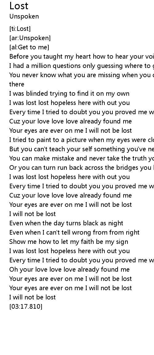| [01:40.140] | I was lost lost hopeless here with out you |