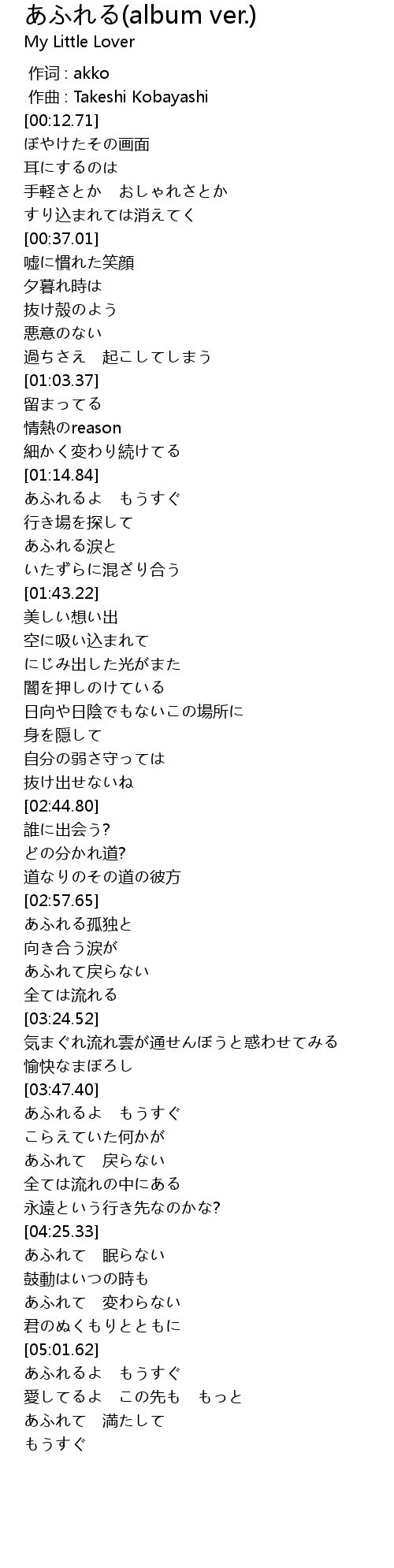 | [03:11.29] | あふれて戻らない |