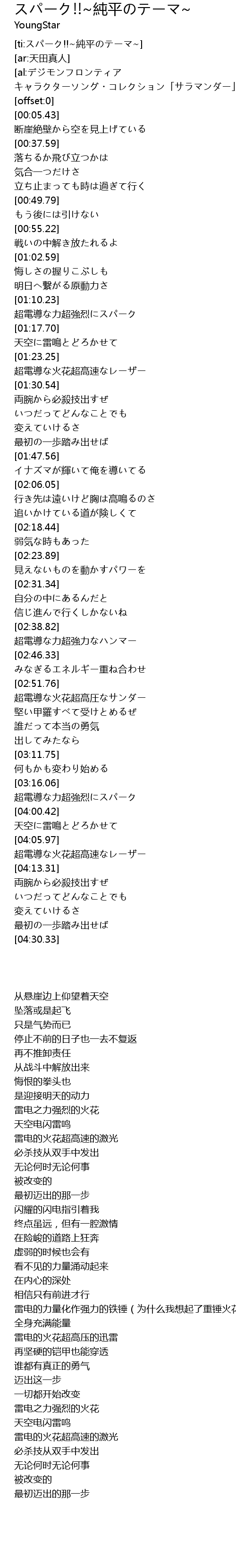 | [02:53.36] | 超電導な火花超高圧なサンダー |