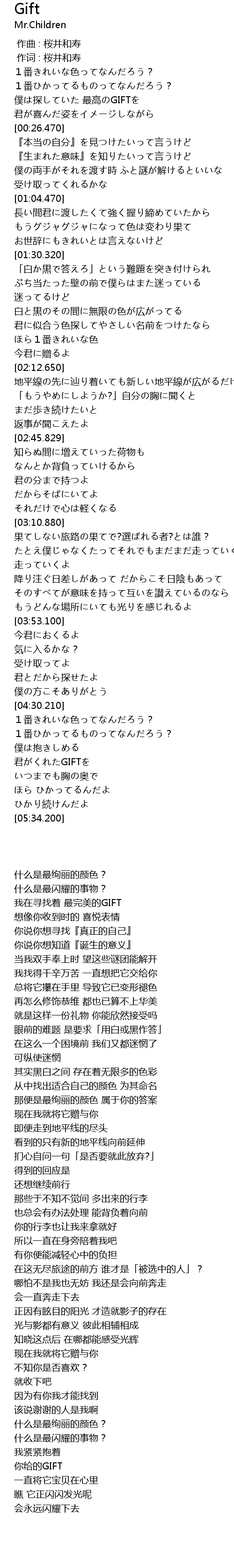 | [00:12.480] | 僕は探していた 最高のGIFTを |