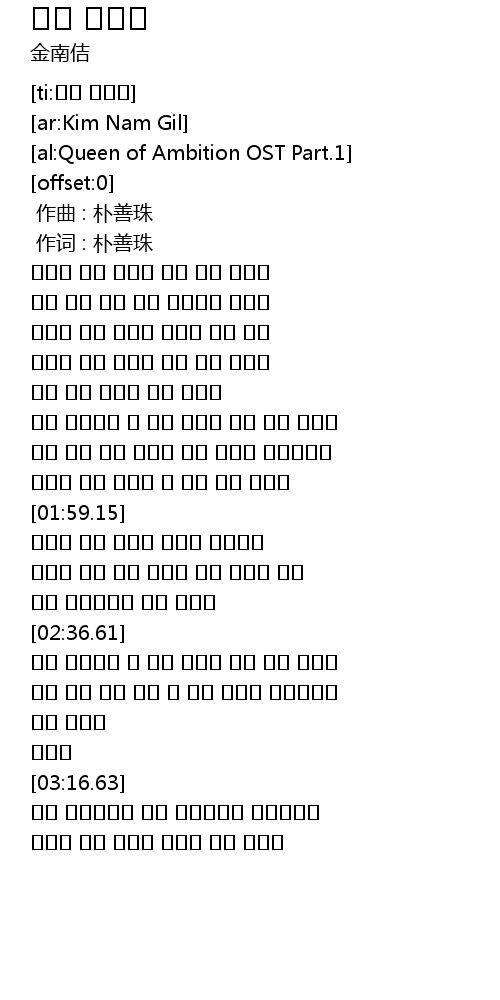 | [03:36.84] | 머리로 맘을 속인다 눈물이 입을 막는다 |