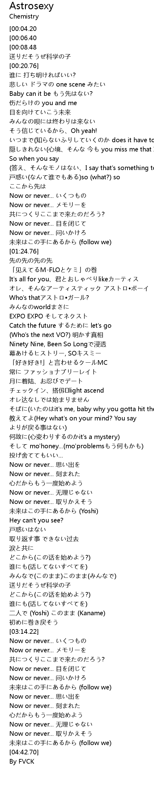 | [01:34.50] | 「见えてるM-FLOとケミ」の巻 |
