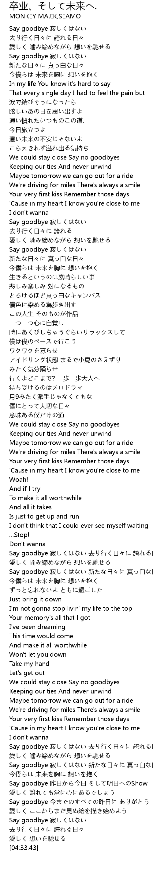 | [04:03.06] | Say goodbye 昨日から今日 そして明日へのShow |