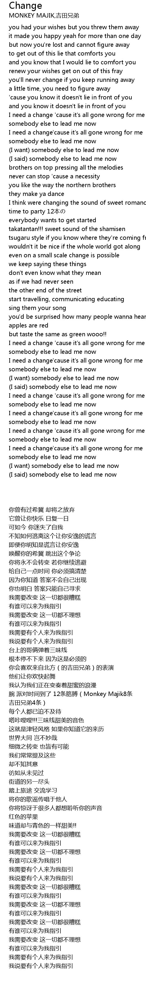 | [03:47.77] | I need a change ' cause it' s all gone wrong for me |