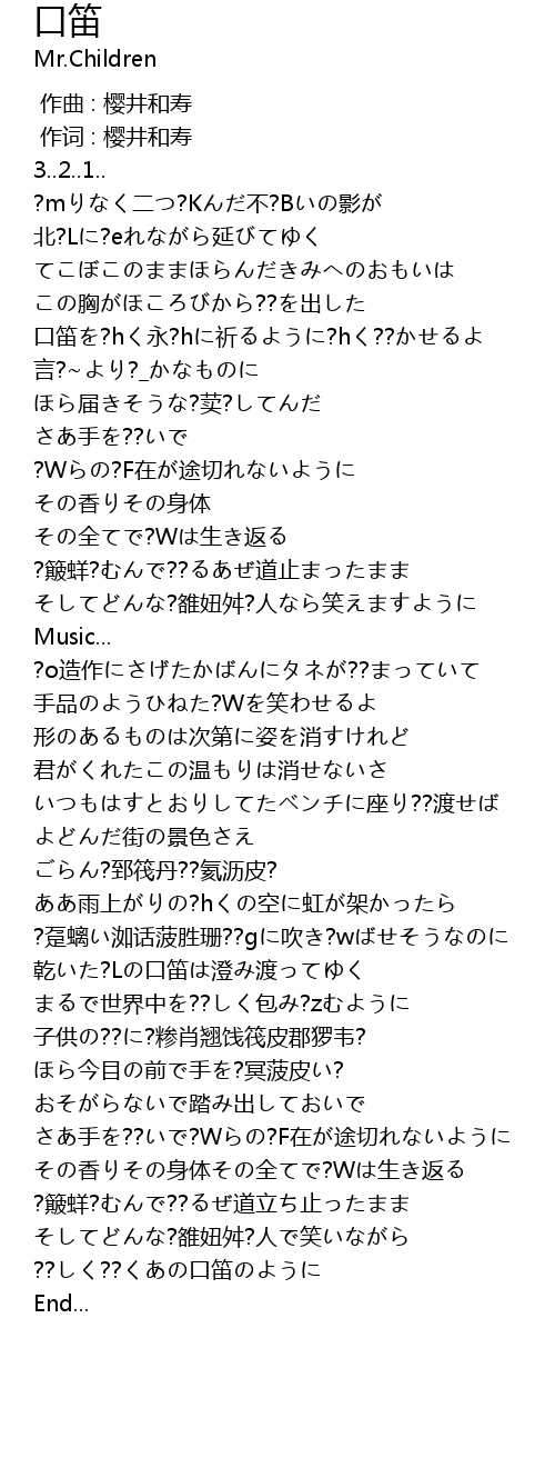 | [01:02.07] | 口笛を?hく永?hに祈るように?hく??かせるよ |