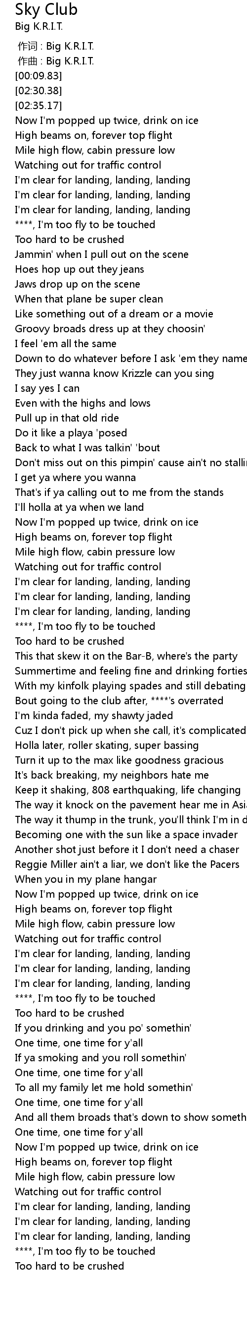 | [01:32.55] | Bout going to the club after, ****'s overrated |