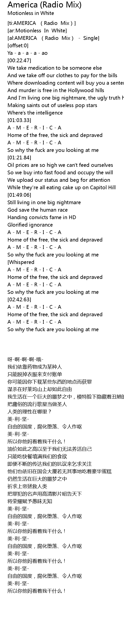| [02:34.43] | A M E R I C A |