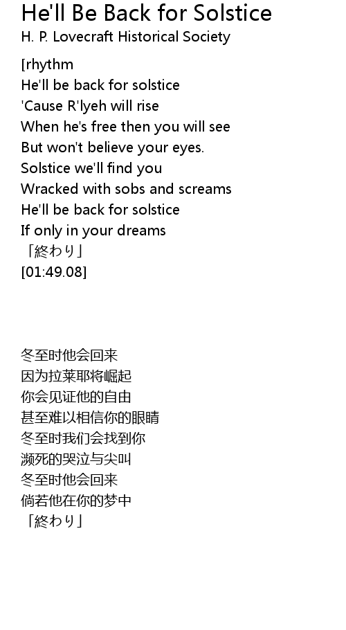 | [00:16.51] | He'll be back for solstice |
