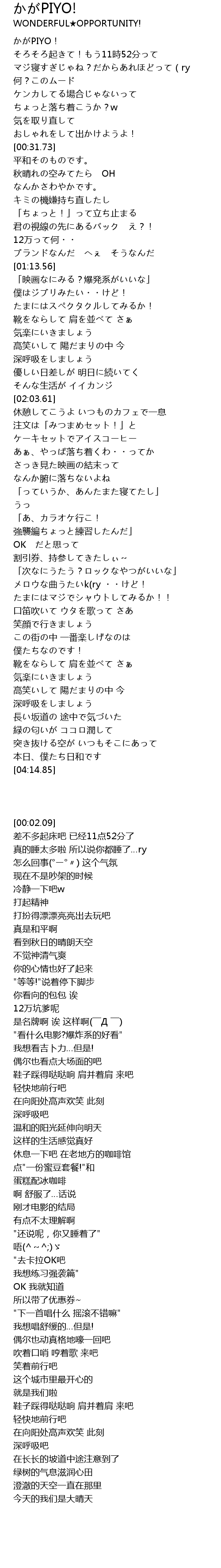 | [04:08.69] | 本日、僕たち日和です |