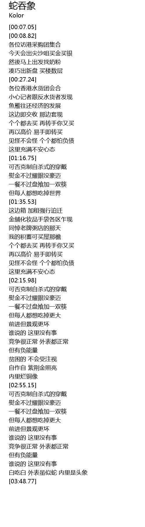 | [03:44.36] | 白吃白 外表虽似蛇 内里是头象 |