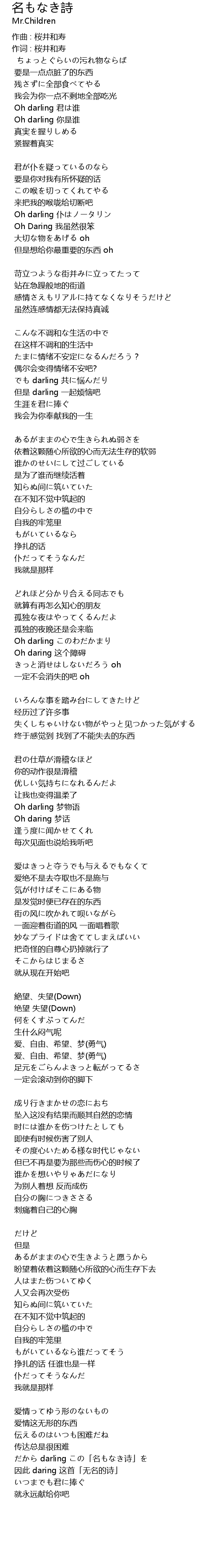 | 作词 : 桜井和寿 | |
