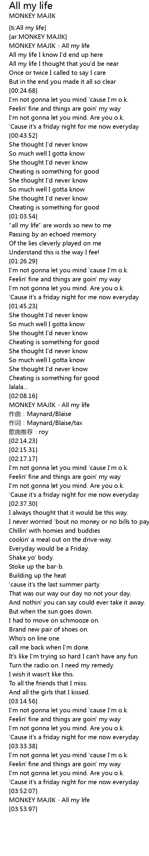 | [00:00.00] | MONKEY MAJIK - All my life |