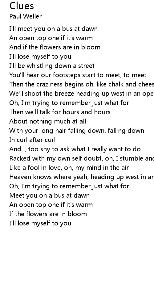 Clues Lyrics