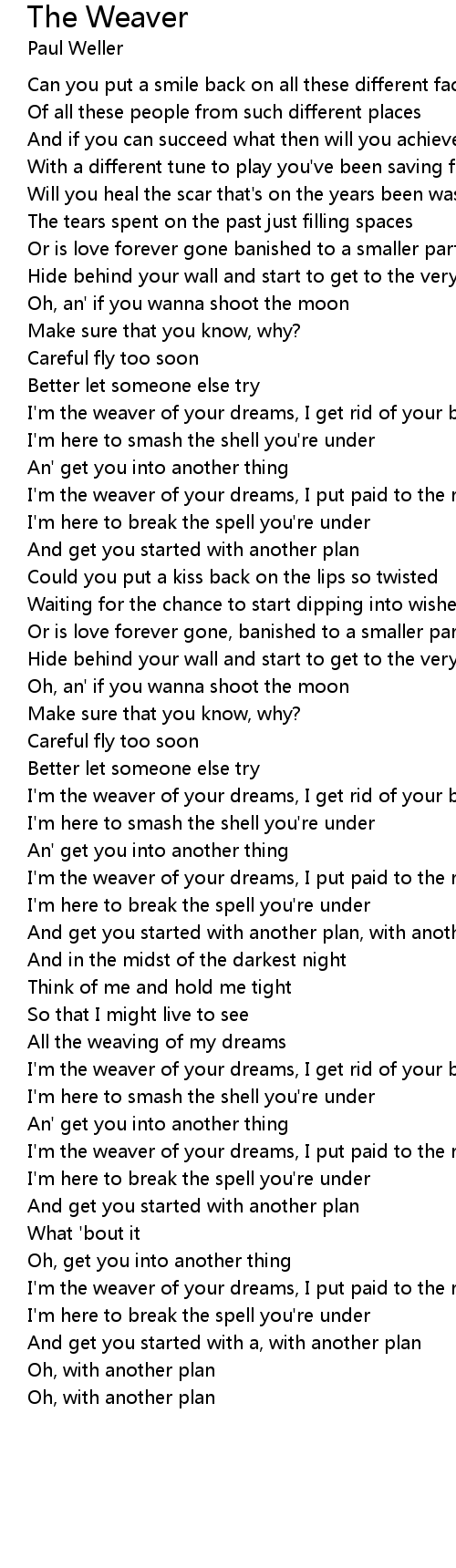 I'm the weaver of your dreams, I put paid to the rocketman |