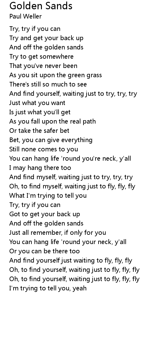 And find yourself, waiting just to try, try, try |