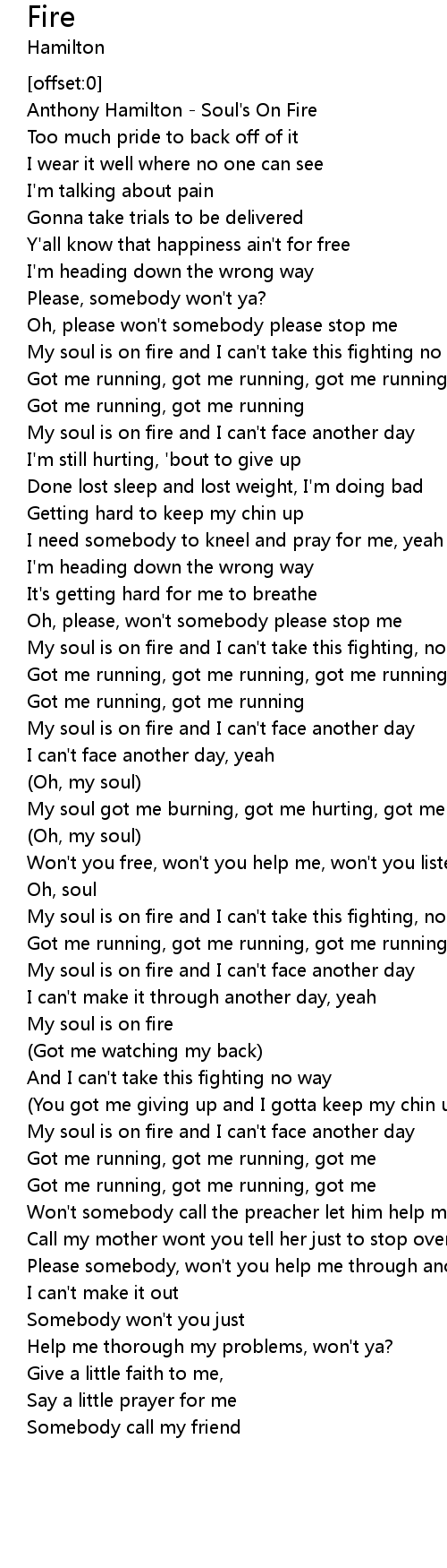 My soul is on fire and I can't take this fighting no way |