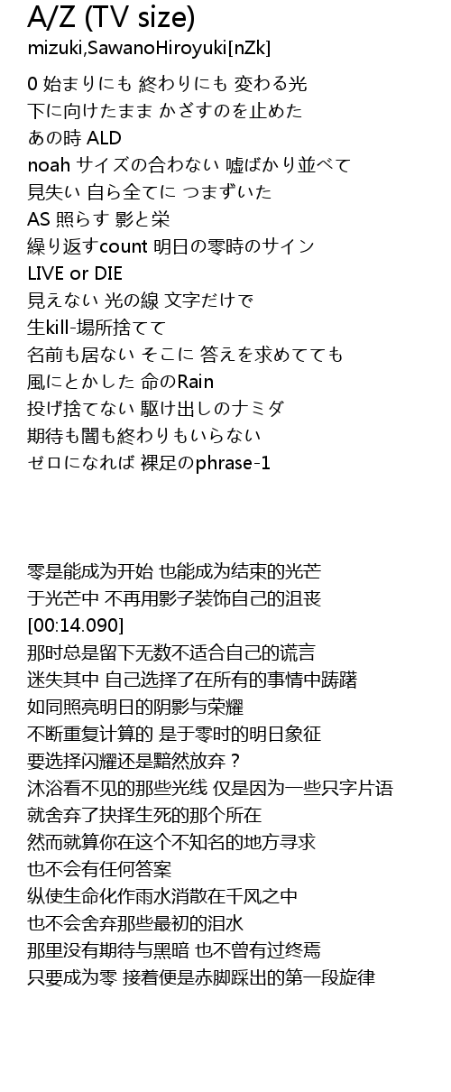 | [01:22.330] | ゼロになれば 裸足のphrase-1 |