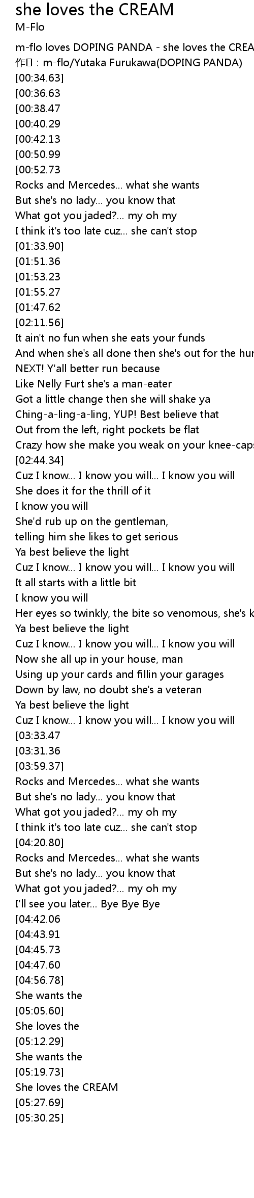 | [00:00.00] | m-flo loves DOPING PANDA - she loves the CREAM |