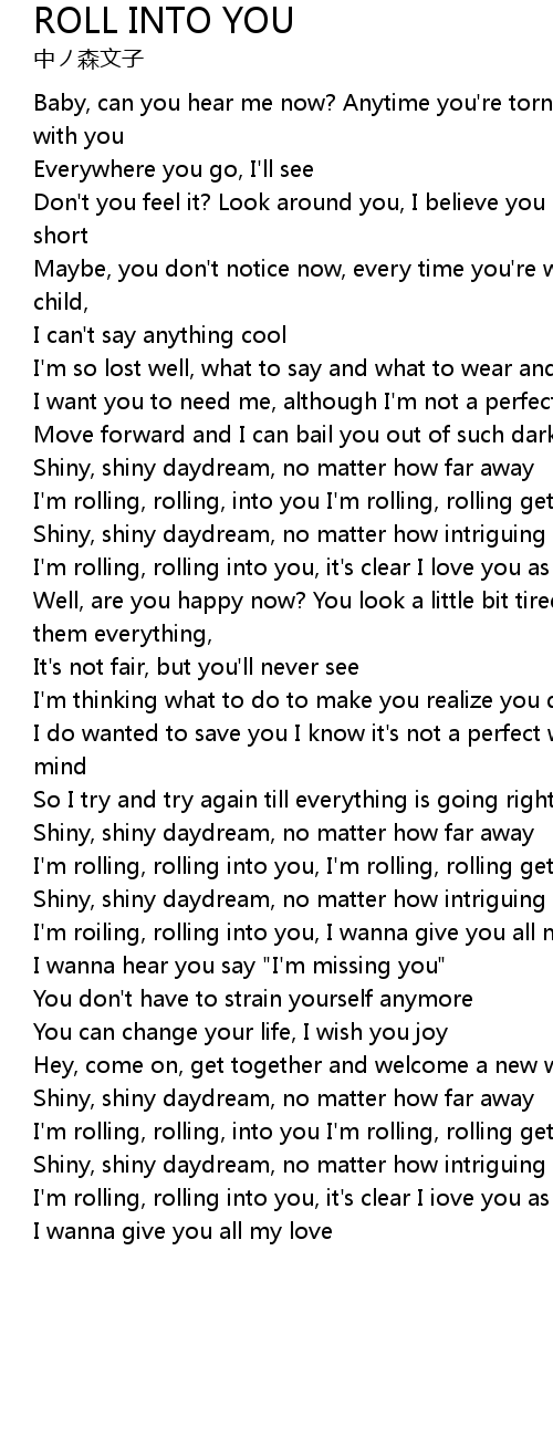 | I'm rolling, rolling into you, it's clear I love you as you are ・・・oh | |