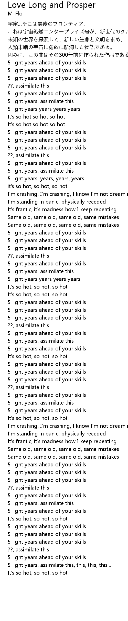 | Song | Love Long and Prosper |