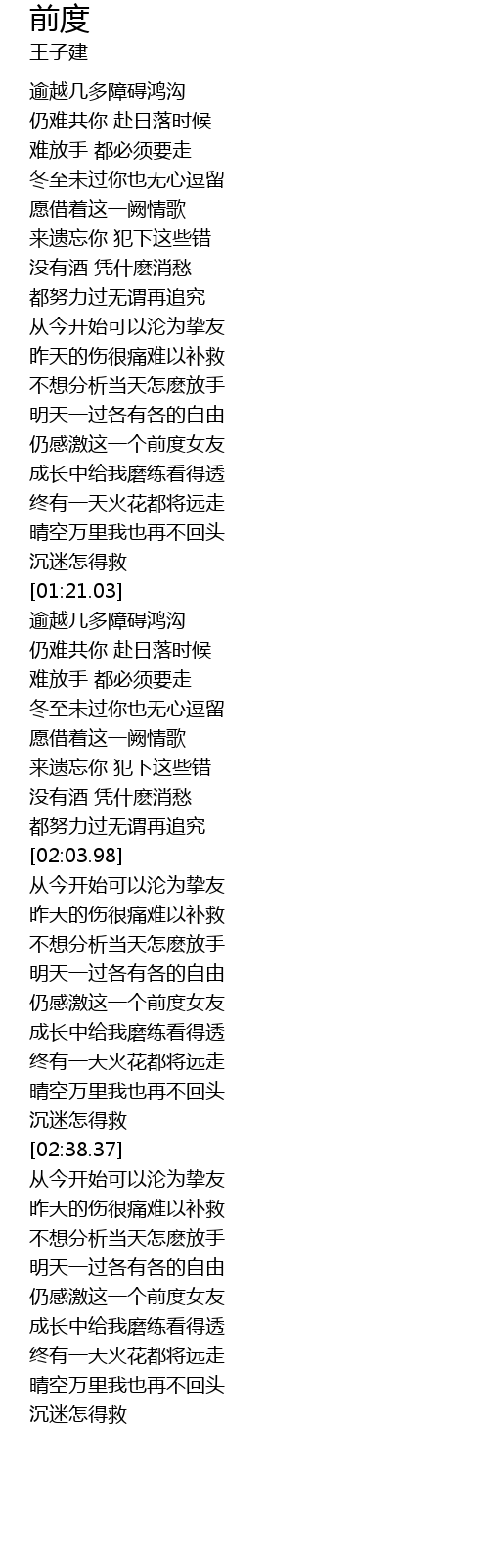 | [01:02.96] | 仍感激这一个前度女友 |