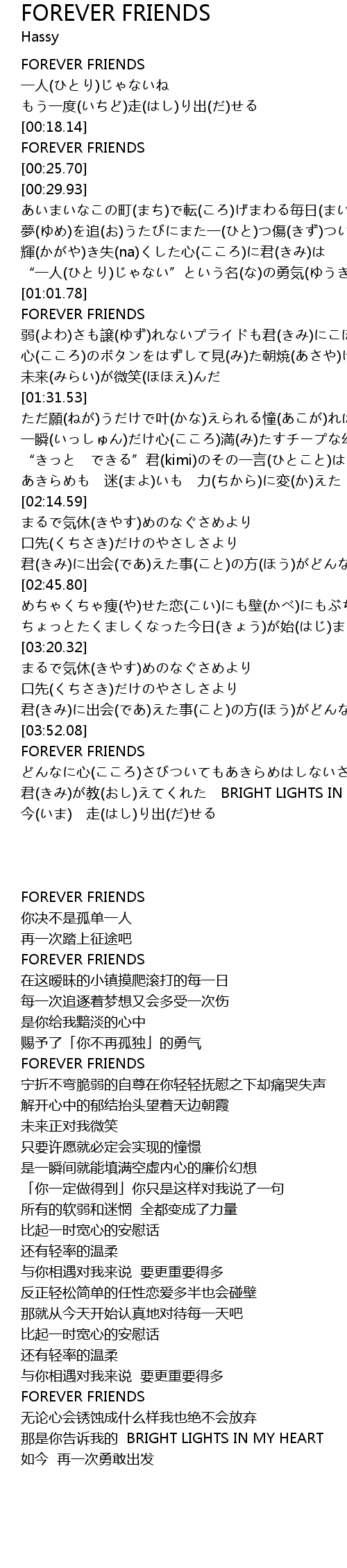 | [04:08.66] | 君(きみ)が教(おし)えてくれた BRIGHT LIGHTS IN MY HEART |