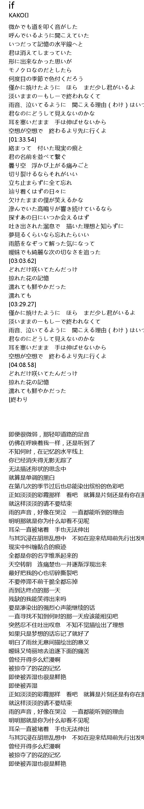 | [03:35.82] | 淡いままのーもしーで終われなくて |