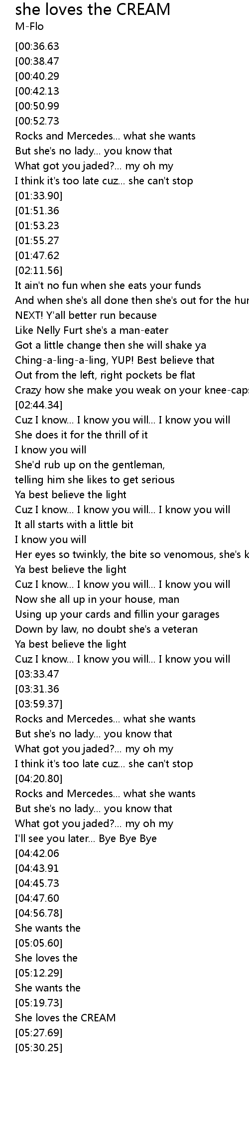 | [05:25.86] | She loves the CREAM |