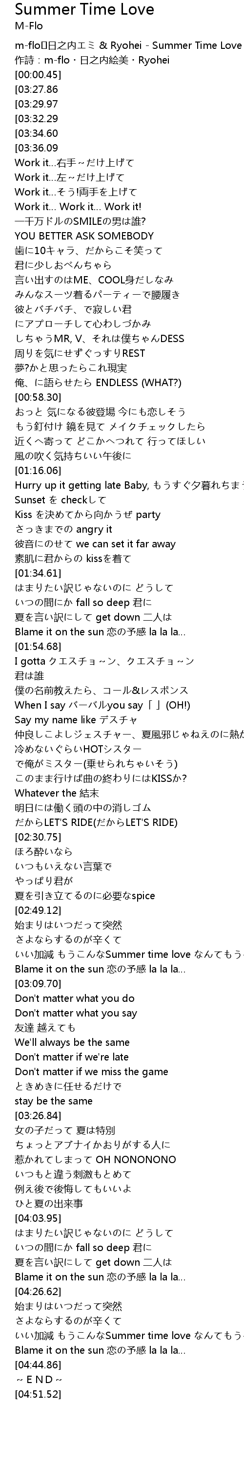 | [00:00.00] | m-flo♥日之内エミ & Ryohei - Summer Time Love |