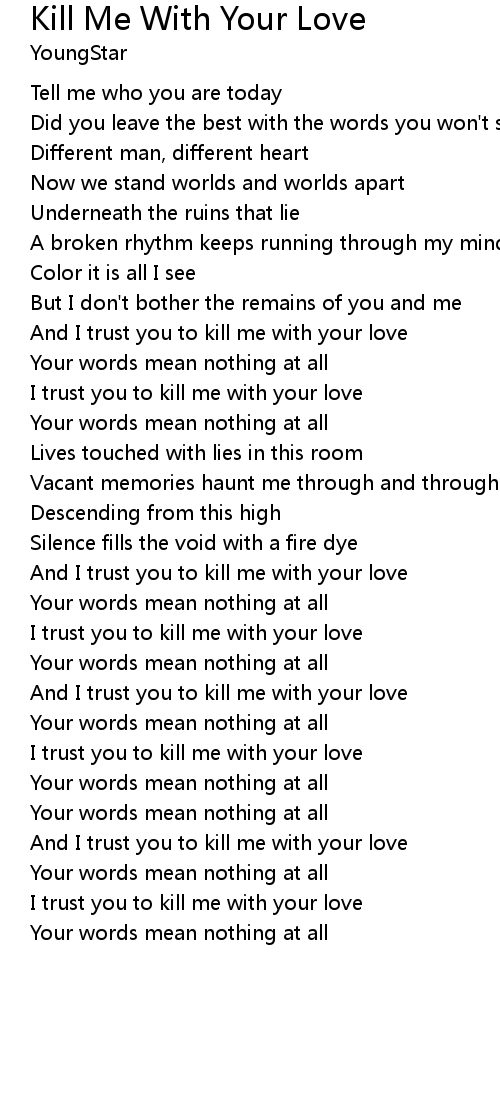 I trust you to kill me with your love |