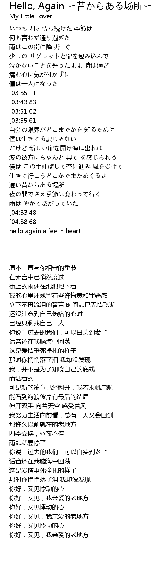 | [04:14.37][04:33.48] | hello again a feeling heart |