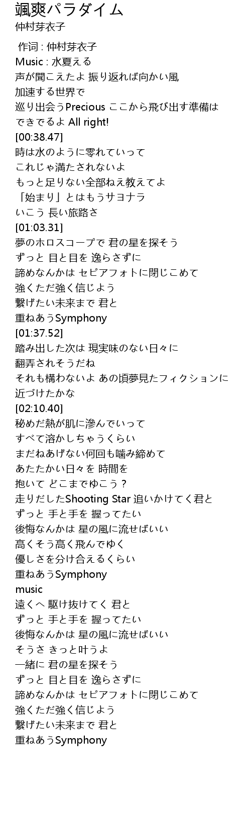 | [00:00.00] | 作词 : 仲村芽衣子 |