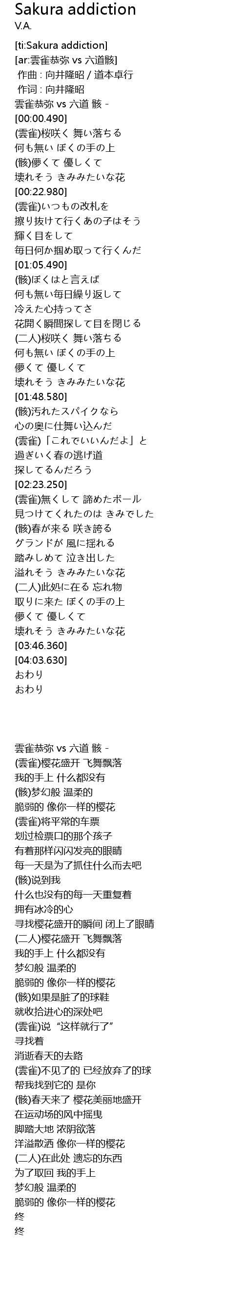 | [01:26.090] | (二人)桜咲く 舞い落ちる |
