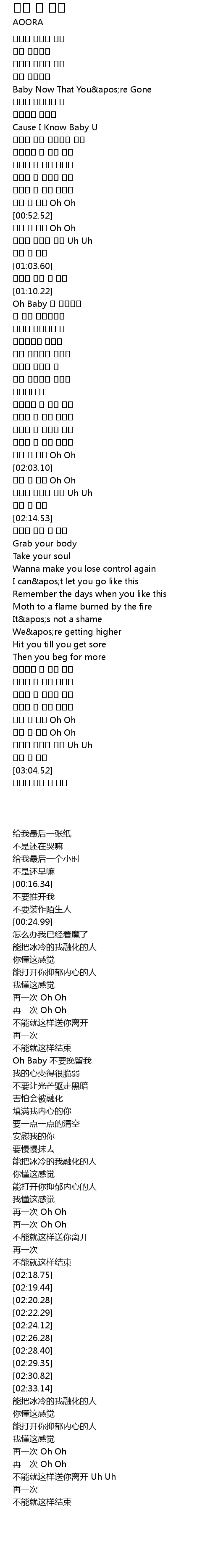 | [01:11.55] | Oh Baby 날 붙잡지마 |