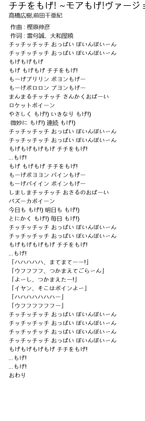 | [02:58.01] | もげもげもげもげ チチをもげ! |