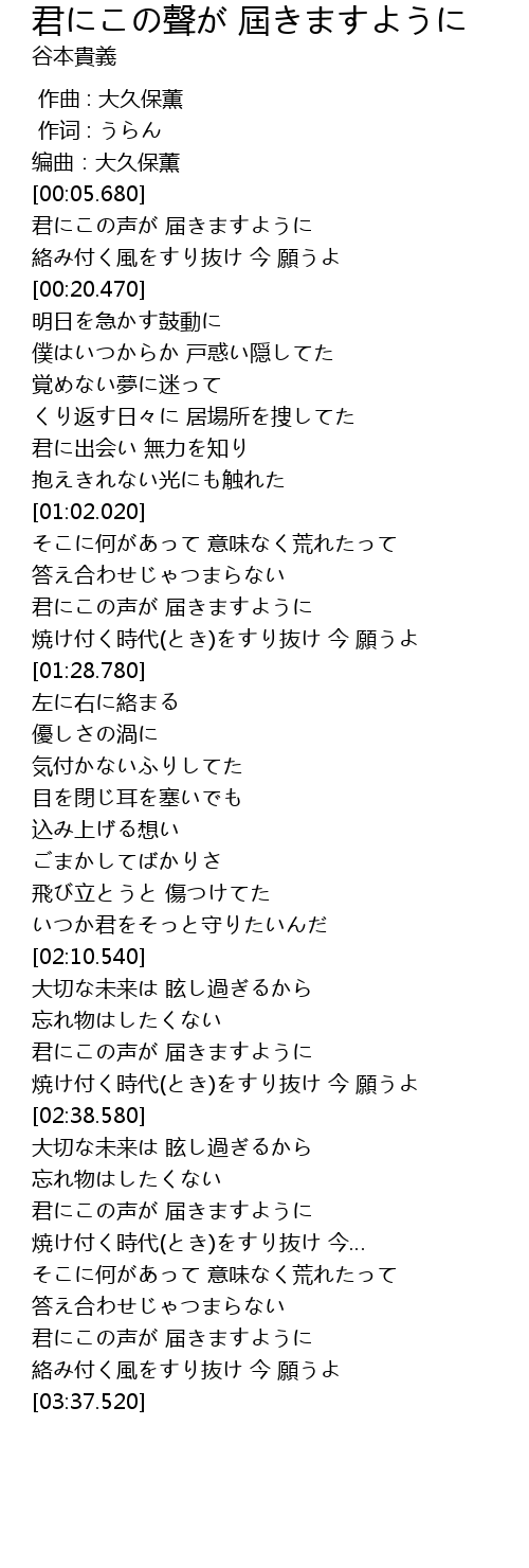 | [02:23.940] | 君にこの声が 届きますように |
