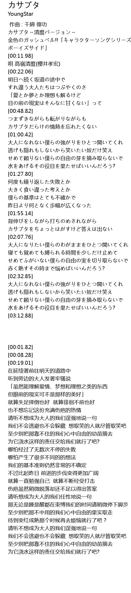 | [00:01.82] | カサブタ~清麿バージョン~ |