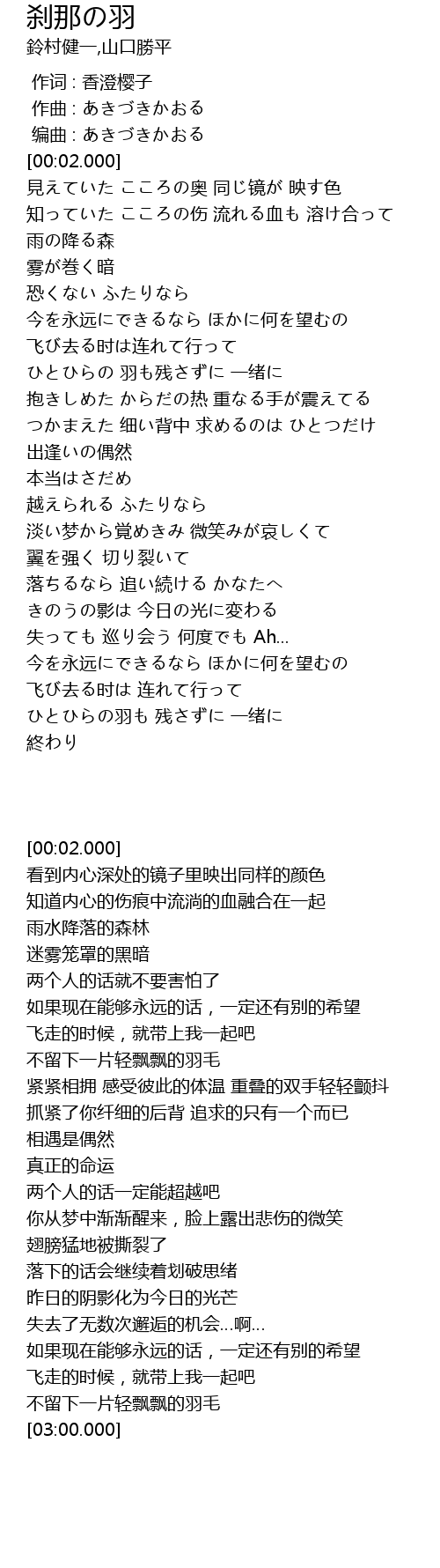 | [02:50.500] | ひとひらの羽も 残さずに 一绪に |