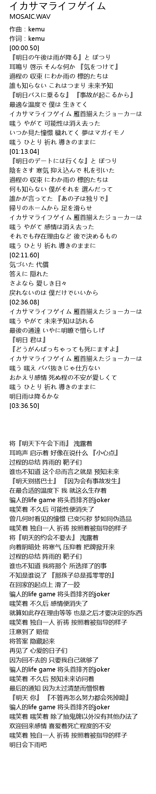 | [00:00.00] | 作曲:kemu |