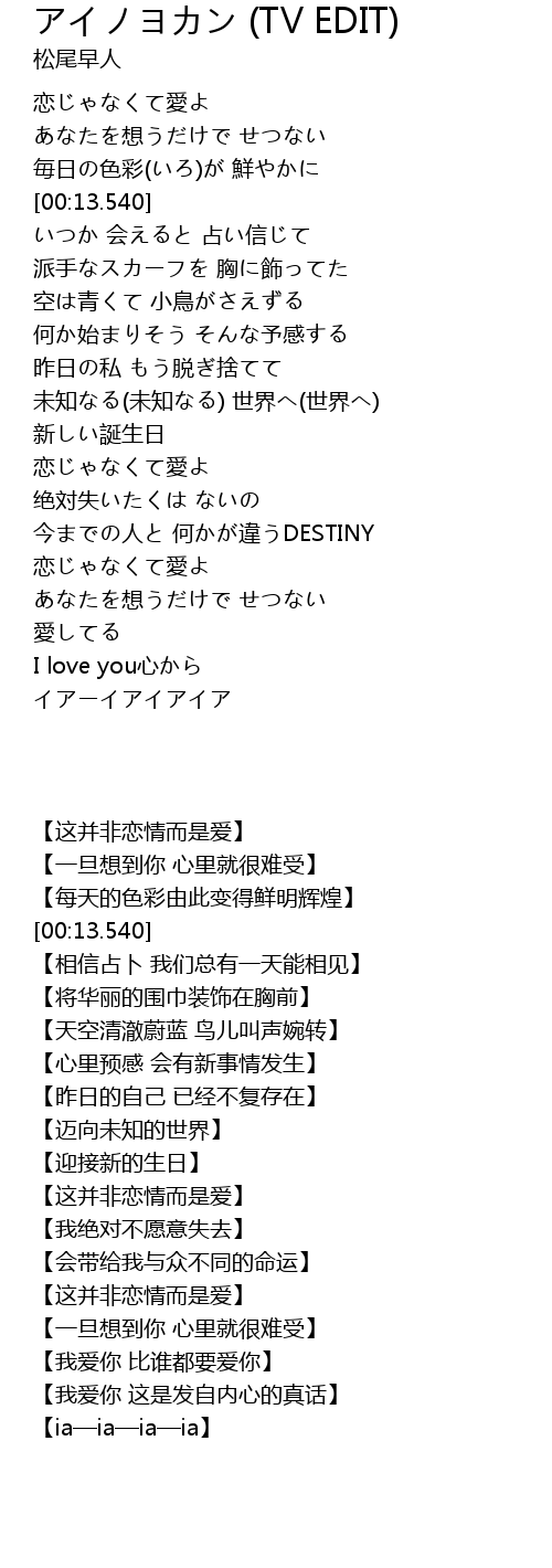 | [00:00.000] | 恋じゃなくて愛よ |