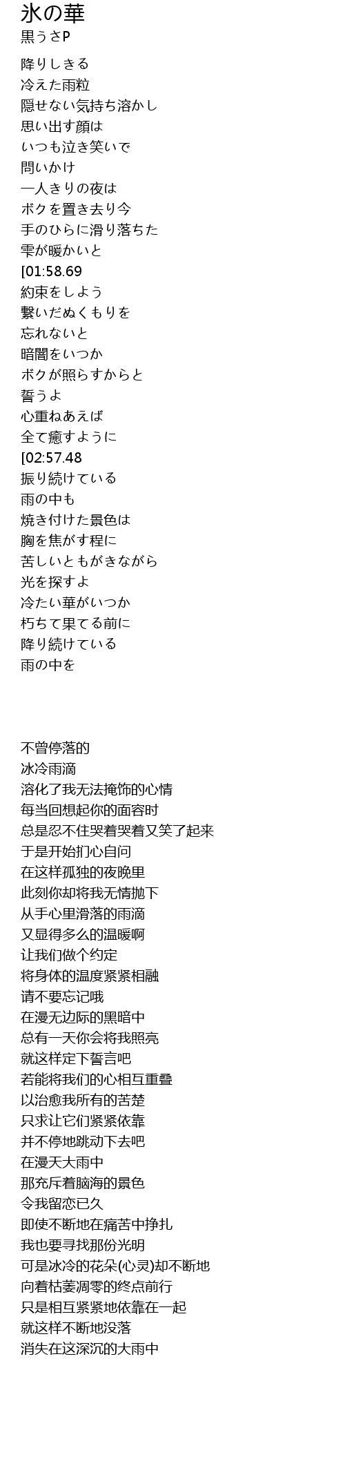 | [01:45.44][02:57.48] | ひしひしとただ |