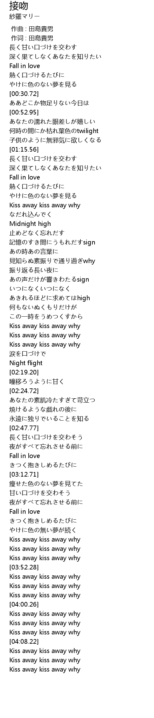 | [02:49.42] | 長く甘い口づけを交わそう |