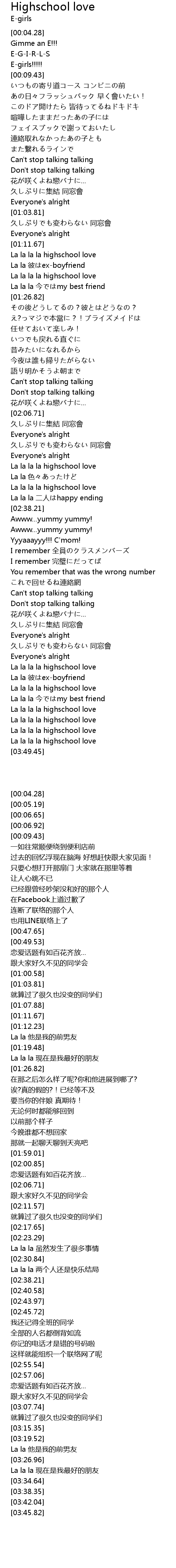 | [03:38.35] | La la la la highschool love |