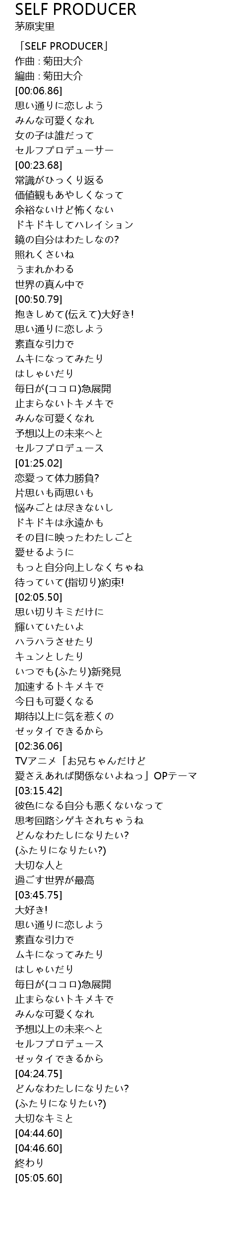 | [01:20.59] | セルフプロデュース |