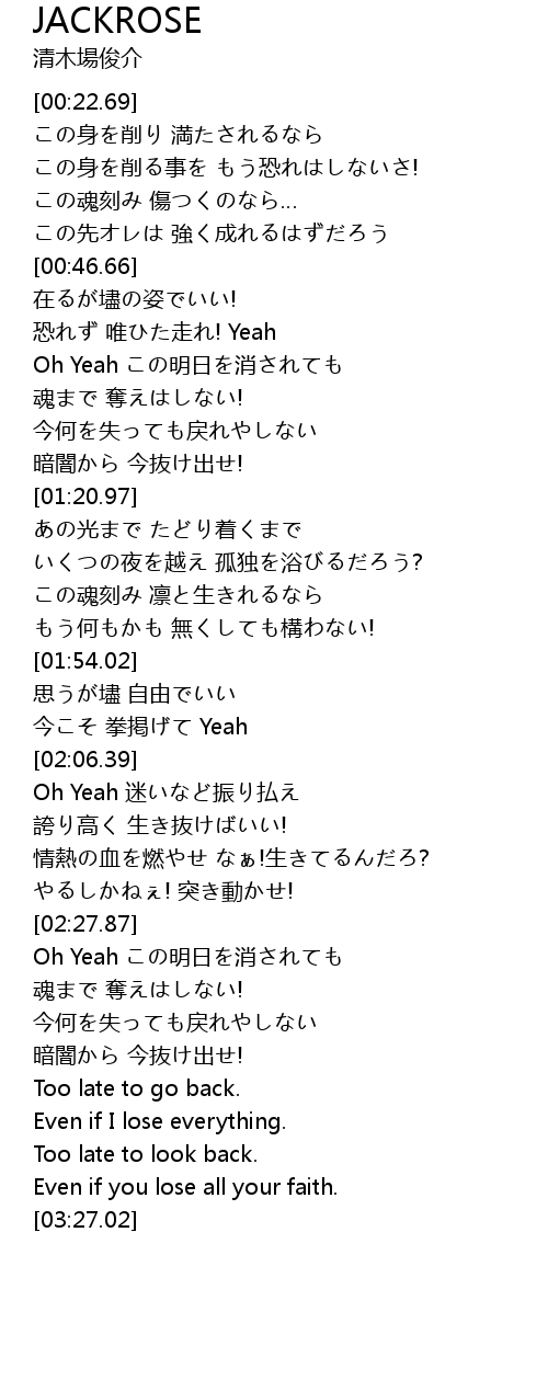 | [00:59.58] | Oh Yeah この明日を消されても |