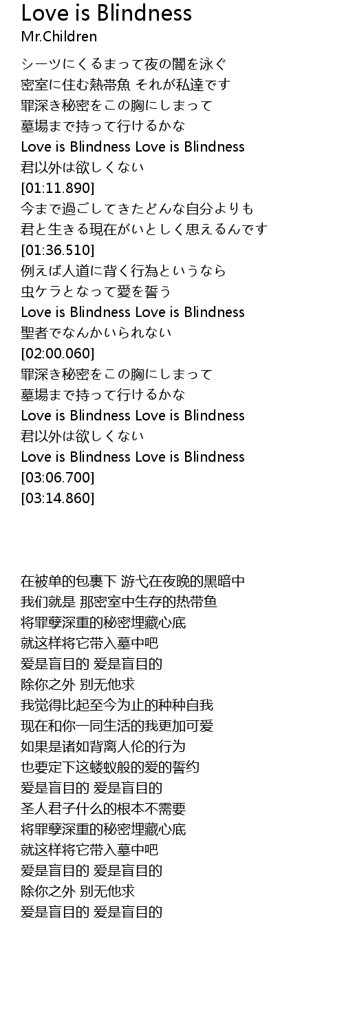 | [02:49.600] | Love is Blindness Love is Blindness |
