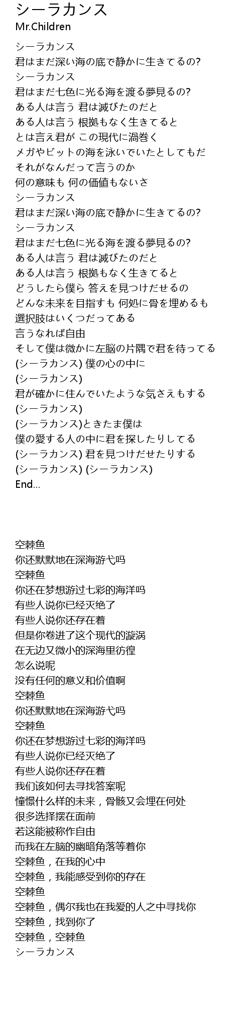 | [04:08.50] | (シーラカンス) (シーラカンス) |